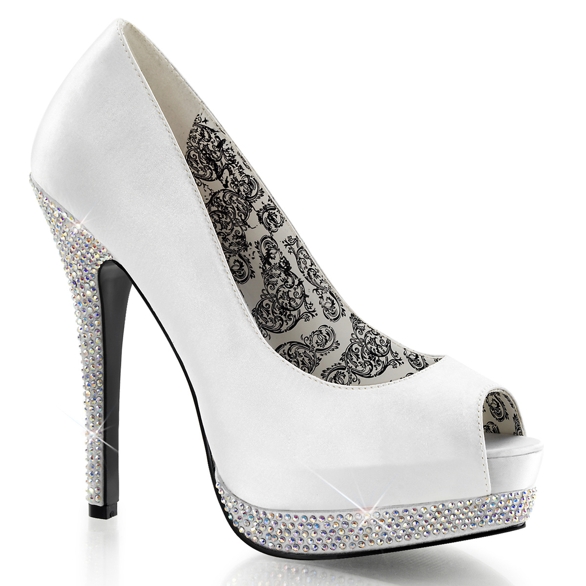 Bílé lodičky s otevřenou špičkou na platformě s vysokými podpatky