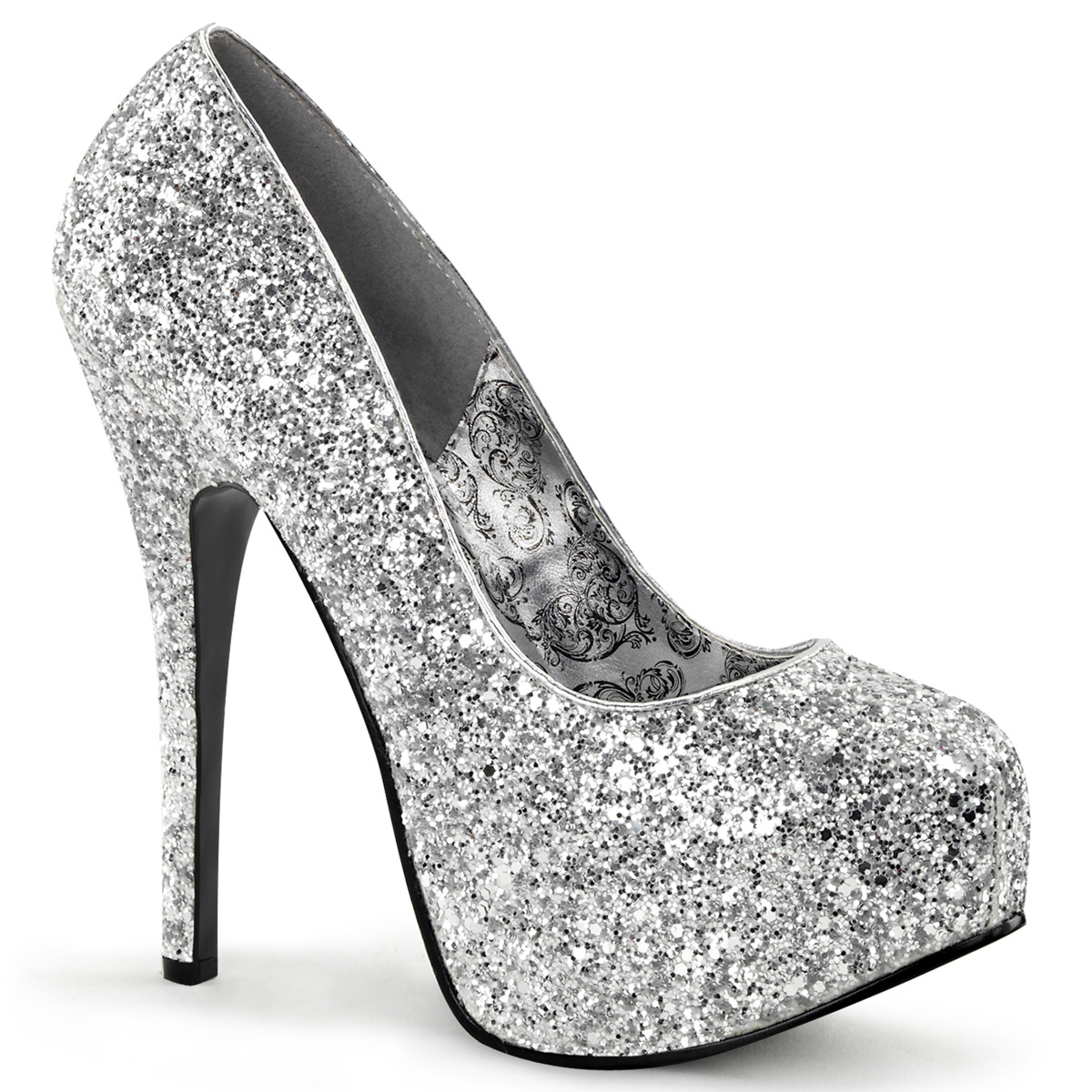 Stříbrné lodičky na platformě s vysokými podpatky
