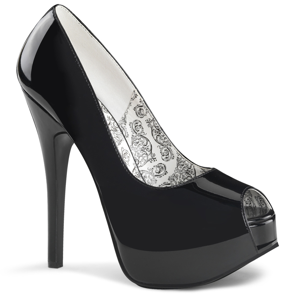 Lesklé černé lodičky s otevřenou špičkou na platformě s vysokými podpatky