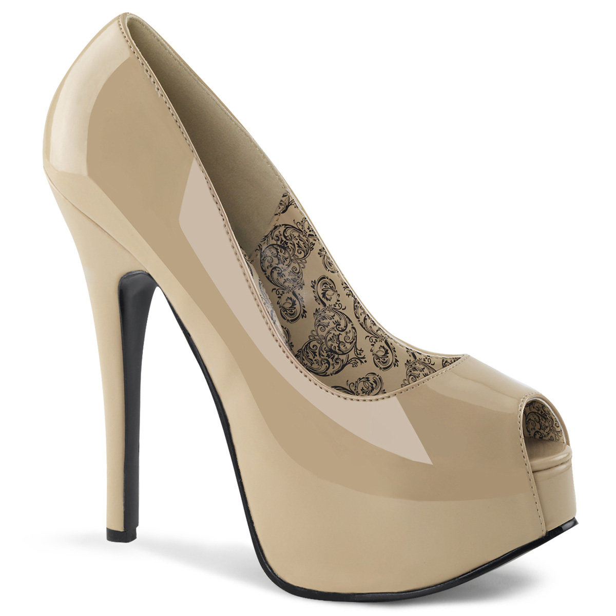 Lesklé béžové lodičky s otevřenou špičkou na platformě s vysokými podpatky