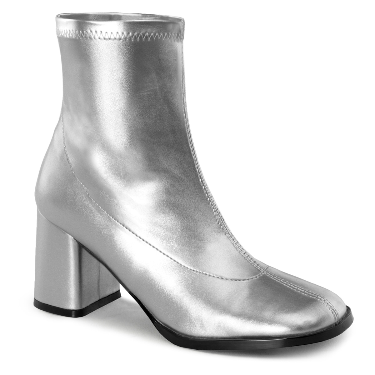 Tyto boty z modelové řady Gogo mají 8 cm vysoké šíroké podpatky, která jsou ve spodní části podkovovité. Špička této boty je kulatá.