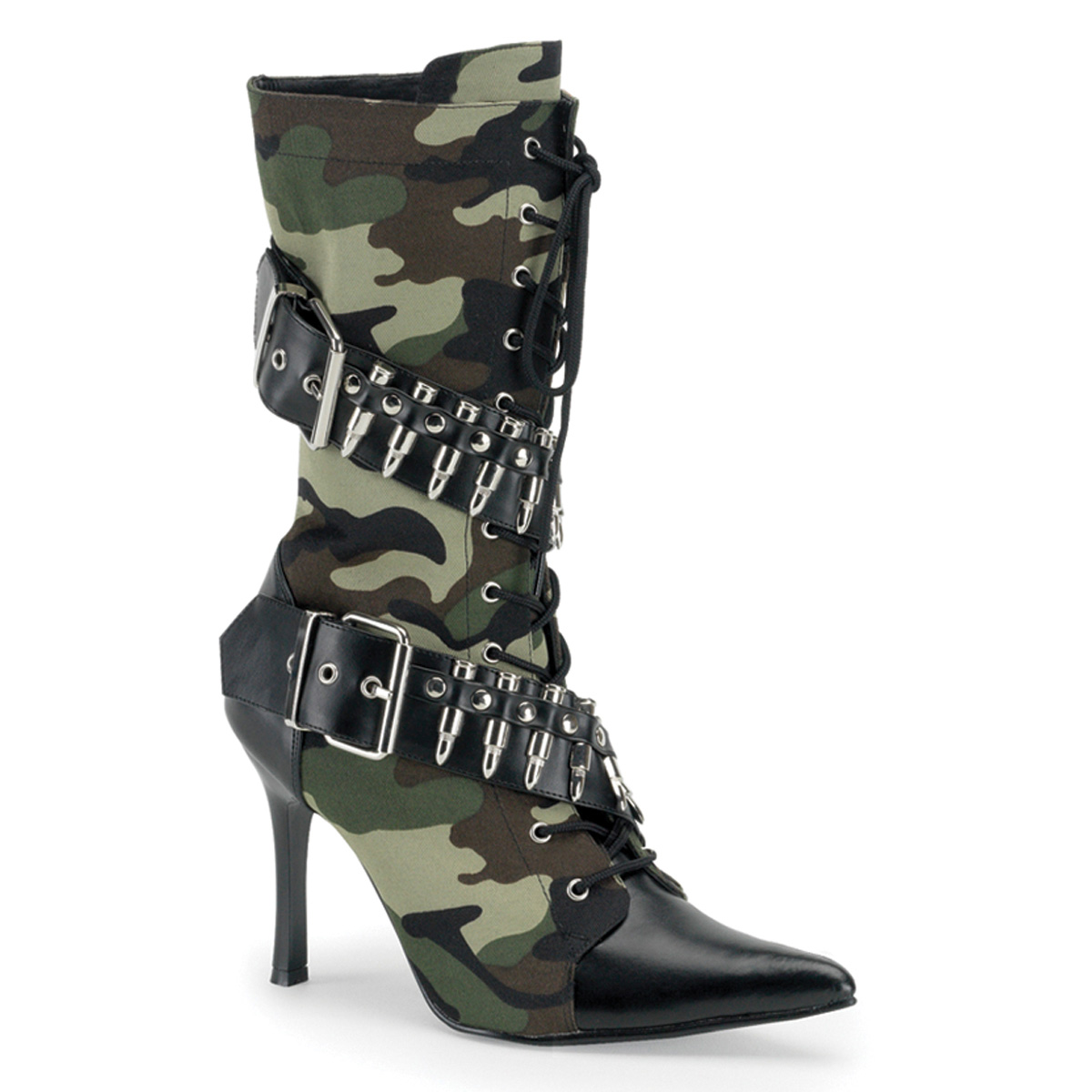 Lesklé kamufláž kotníkové kozačky na podpatku