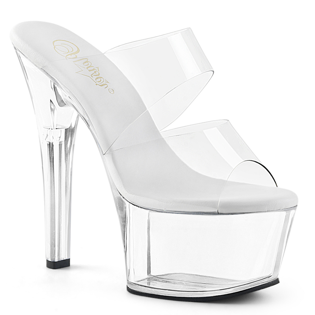 Průhledné pantofle na platformě s vysokými podpatky