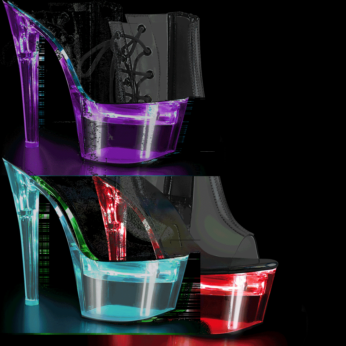 Průhledné svítící kozačky s otevřenou špičkou na vysoké platformě
