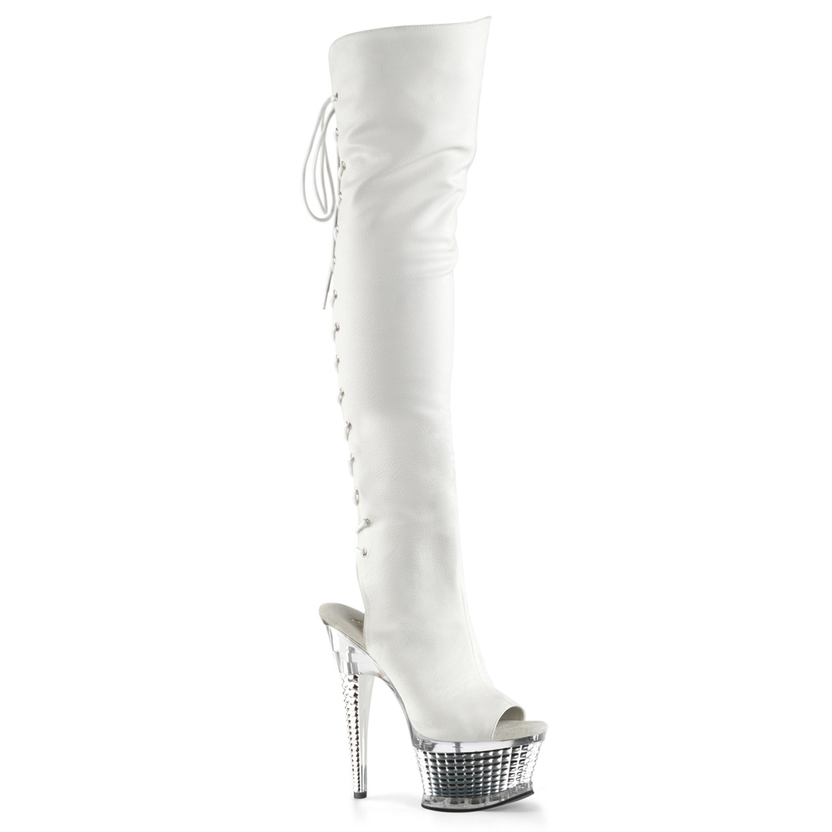 Bílé kozačky s otevřenou špičkou na platformě s vysokými podpatky