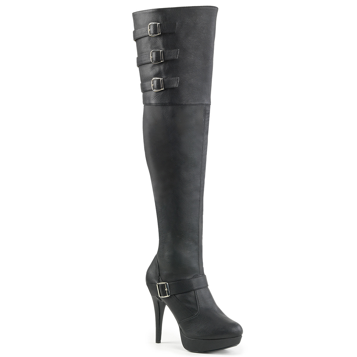 Černé kozačky nad kolena na platformě s vysokými podpatky