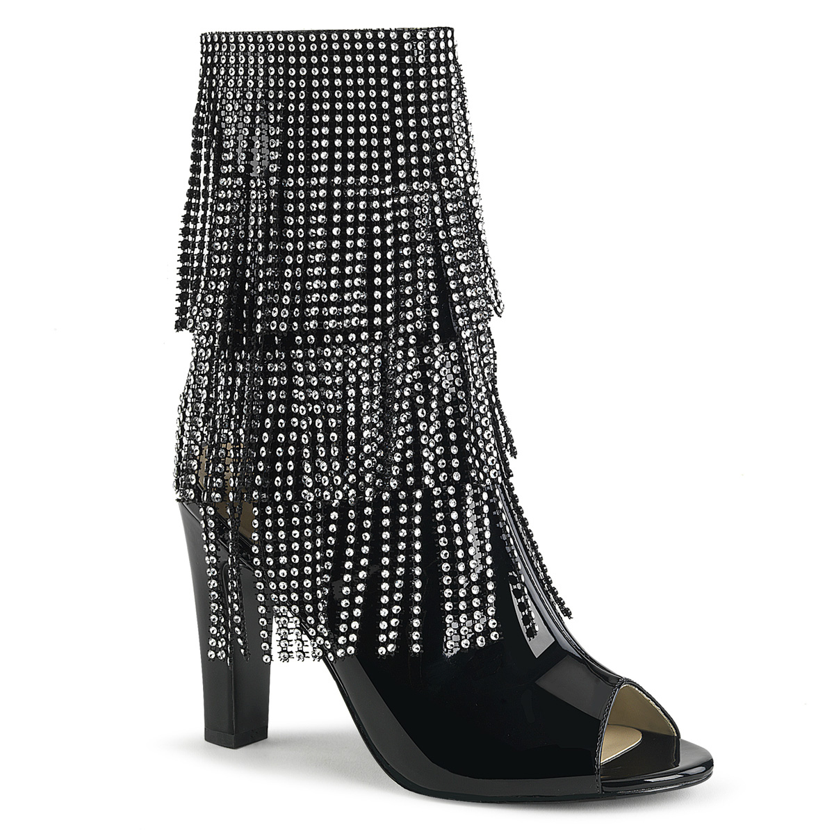 Lesklé černé kotníkové kozačky na vysokých širokých podpatcích